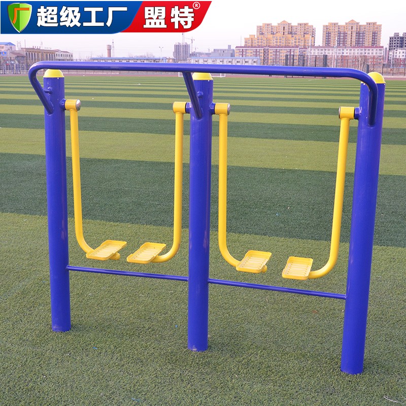 产品名称:太空漫步机(三联) 外形尺寸:3144mmx 522mm x 1309mm 主要功能:提高下肢协调能力和柔韧性,锻炼腿部肌肉力量,增强心肺功能。促进呼吸系统的健康;既锻炼身体又愉悦身心。适合青壮年和老年人群练习。 健身路径系列产品颜色分为红黄搭配、蓝黄搭配、绿黄搭配、红白搭配、绿白搭配等。如有颜色要求的客户可提前说明,可定制 使用材料:公司选用优质国标钢材,严格按照国家体育用品质量检测中心规定的材质要求生产加工。立柱采用?114mm,壁厚为3.0mm钢管(管材质量均符合BS1387-1985标准要求,技术标准符合BS1387-1985要求),铁件采用?60mm、?48mm、?38mm、?32mm、?28mm,壁厚为2.75mm钢管(管材质量均符合BS1387-1985标准要求,技术标准符合BS1387-1985要求). 工艺制作:公司全部采用先进的二氧化碳保护焊,焊接强度较普通焊接更高,确保焊接部位的坚固性及美观性。 抛丸除锈,既除锈又能增加了器材的表面积,为加强了后续喷塑工序的吸附能力奠定了基础,这是酸洗除锈不可比拟的优势。静电喷塑,先进的静电喷塑设备采用环保塑粉,对器材表面进行喷塑处理。